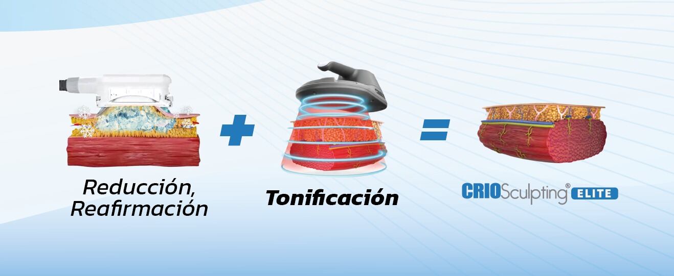 CRIOSCULPTING® ELITE. “Es un sistema completo de reducción y reafirmación que también tonifica los músculos. Lo primero que nosotros trabajamos es el tejido adiposo, que es la grasa. Esta se elimina logrando que la piel no se quede flácida y ahora hemos adicionado a este sistema una tecnología de estimulación electromagnética que va a trabajar directamente a nivel muscular”, explica Valverde.