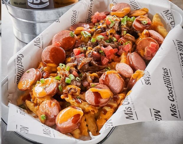 La Salchipapería, reconocida por su propuesta innovadora, ha elevado la salchipapa a otro nivel con su variedad de opciones. Los clientes pueden disfrutar desde la clásica versión con papas fritas y embutidos hasta opciones más elaboradas como la Mixta, que combina hotdog municipal y chorizo de finas hierbas, o el Club Salchipapa, una mezcla irresistible de papas fritas, salchicha frankfurter, pollo a la parrilla, tocino crujiente y huevo frito. Pero uno de los platos más sorprendentes es el Salchicosti, una deliciosa combinación de costillas de cerdo desmenuzadas con tomate, cebolla china, salsa BBQ, mayonesa y queso cheddar.