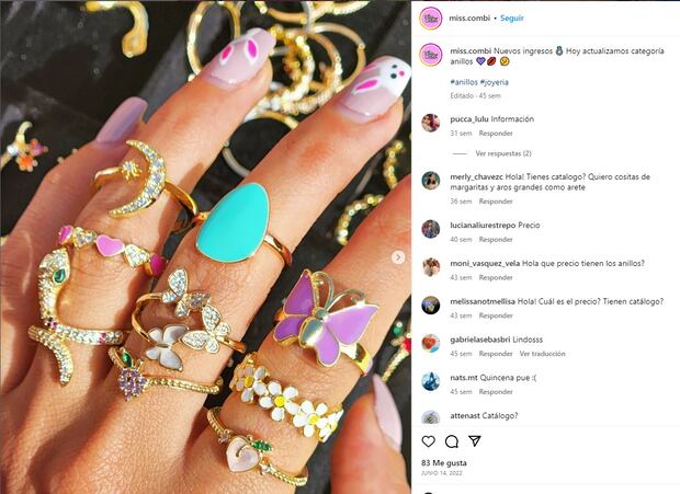 ¿Qué productos ofrece Miss Combi? Todo lo que son accesorios. Desde aretes, ganchitos, anillos y collares. Trabajamos con importación de joyas y también maquillaje. Pero también personalizamos algunas piezas. La venta es por catálogo o en vivo por historias de Instagram.