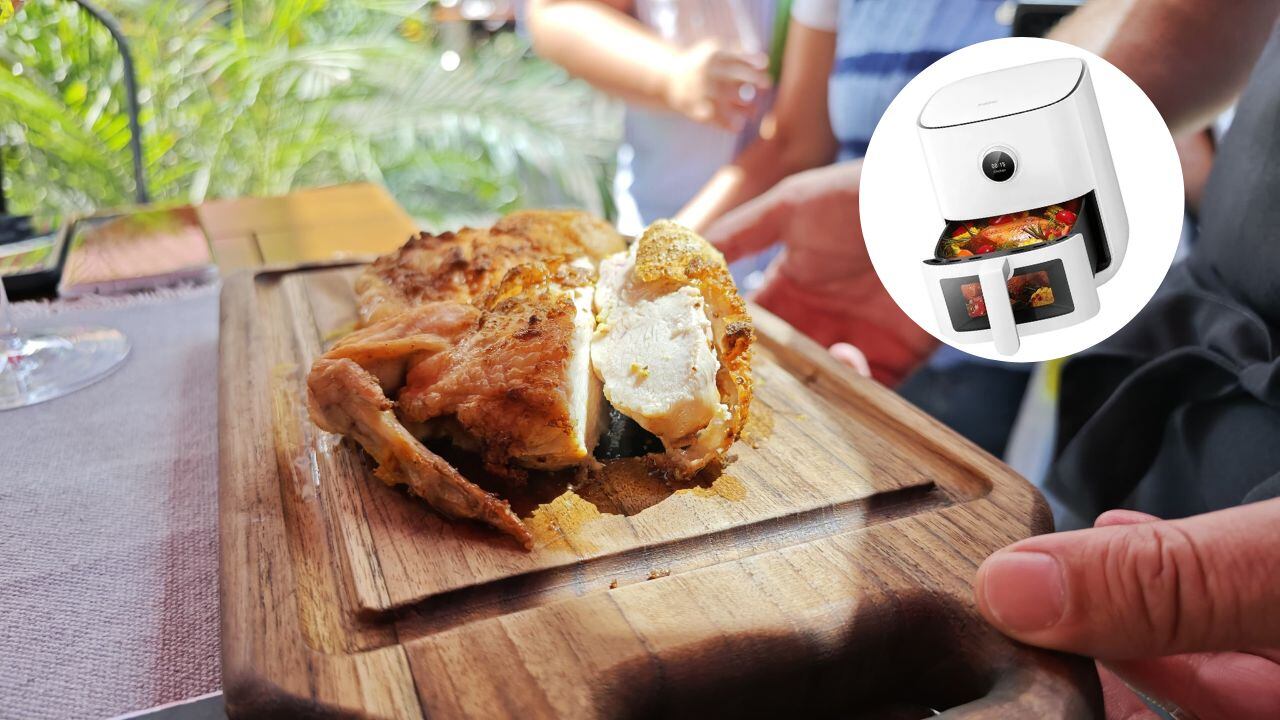 Este pollo, con su piel dorada y crujiente, es otro de los platos más populares de Osso. En la Xiaomi Smart Air Fryer, el chef muestra cómo conseguir un pollo perfectamente cocido, con la textura ideal, sin necesidad de freírlo en grandes cantidades de aceite.