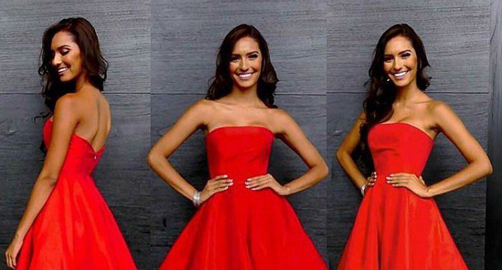 En dicha publicación se pudo ver cómo la joven eligió llevar un vestido de corte strapless en color rojo y falda con bastante vuelo a juego a modo de lienzo para la banda y la corona que la identificara desde ahora y por espacio de un año como la nueva 'reina de la belleza universal peruana'.