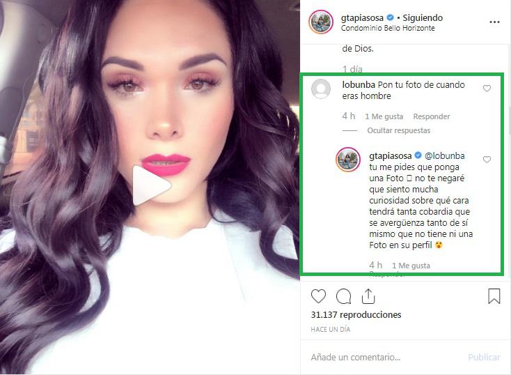 “Pon tu foto de cuando eras hombre”, le escribió un usuario, a lo que Génesis Tapia respondió: “tú me pides que ponga una foto. No te negaré que siento mucha curiosidad sobre qué cara tendrá tanta cobardía que se avergüenza tanto de sí mismo que no tiene ni una foto en su perfil”.