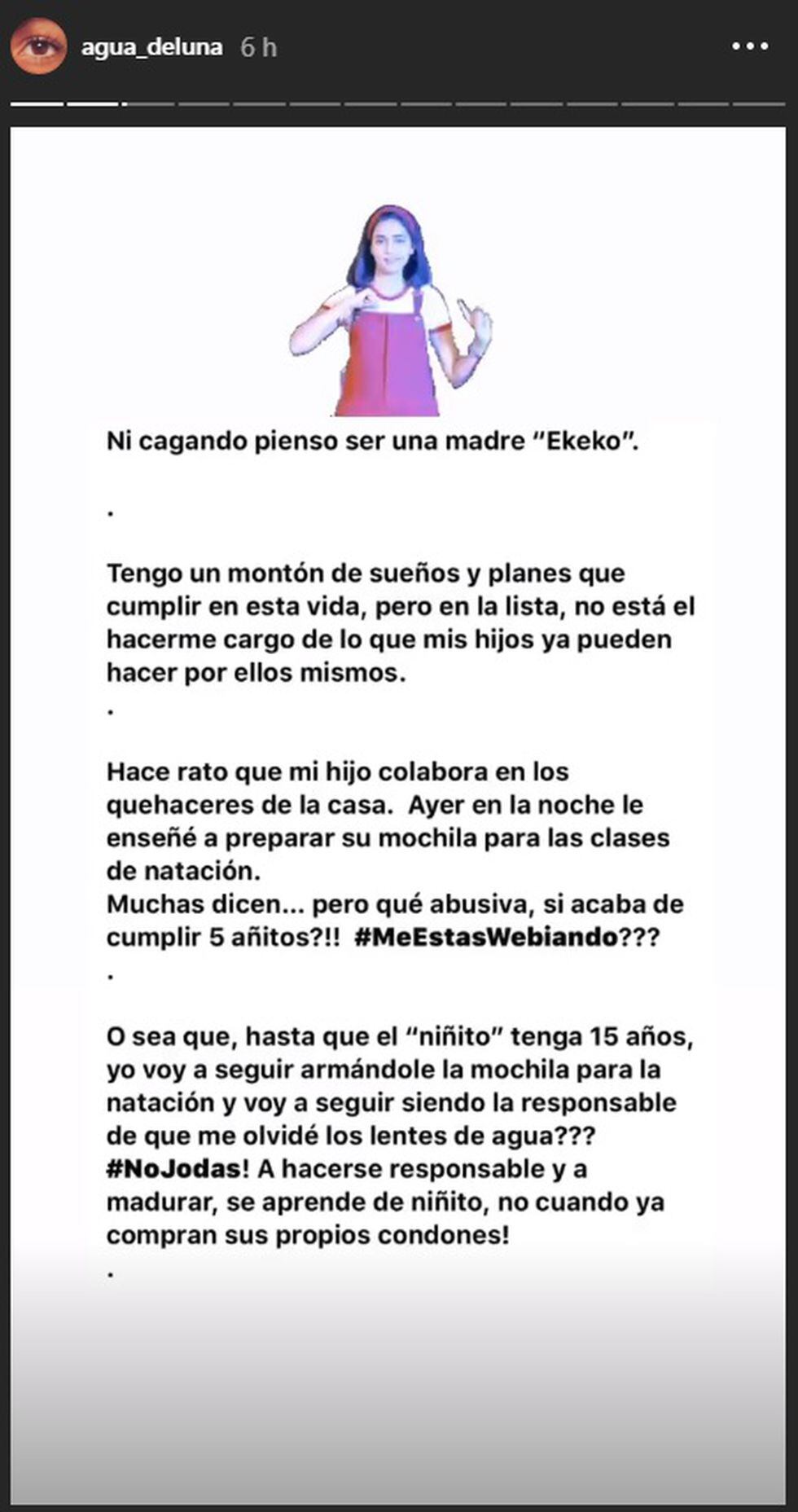 No solo eso, Blanca Rodríguez aclaró a todos sus seguidores que ella no piensa ser una madre "ekeko", es decir, una que se encargue de hacerle todo a los hijos.