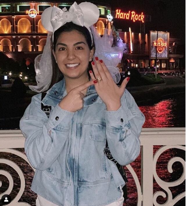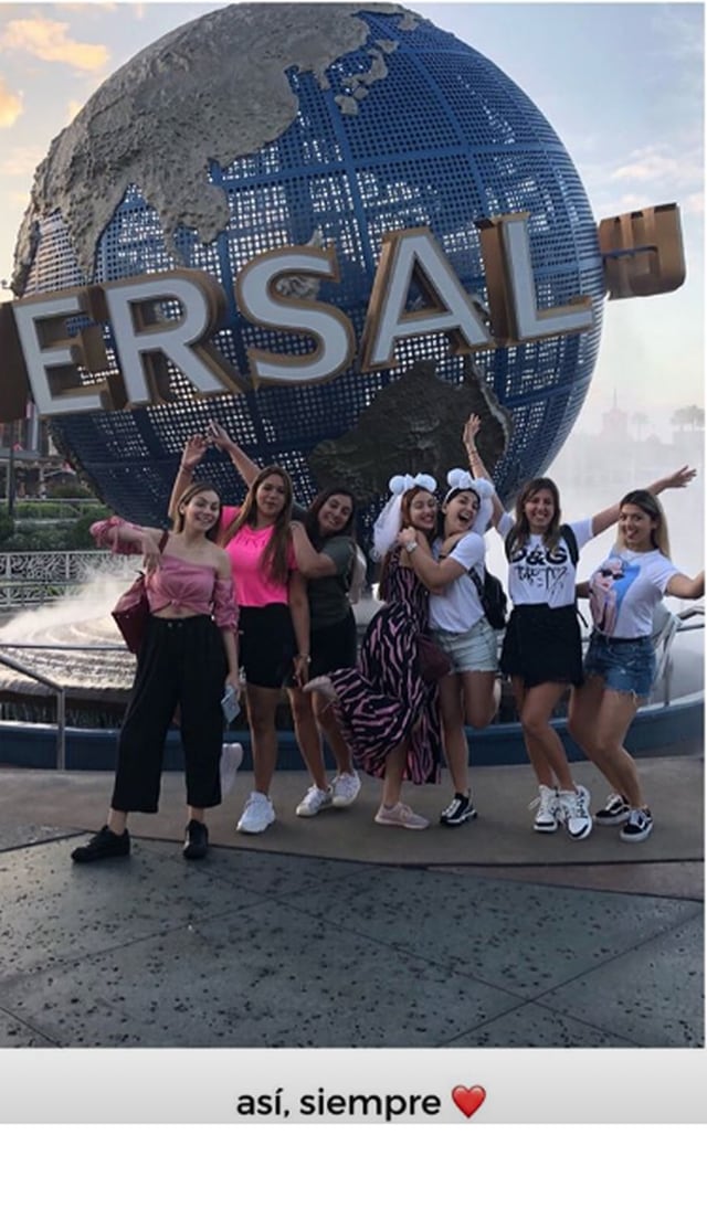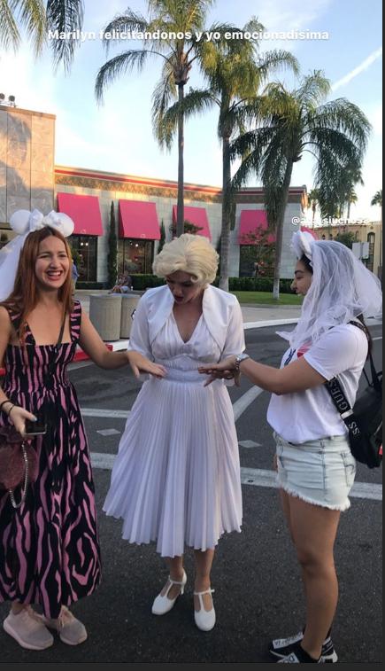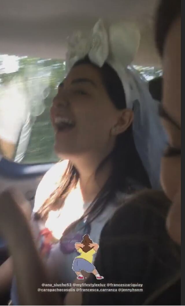 La joven publicó una serie de videos y fotografía de lo que fue su recorrido en las instalaciones del parque de diversiones, junto a sus mejores amigas. Siucho aparece con un velo de novia en todas las fotografías y orejas Mickey Mouse.