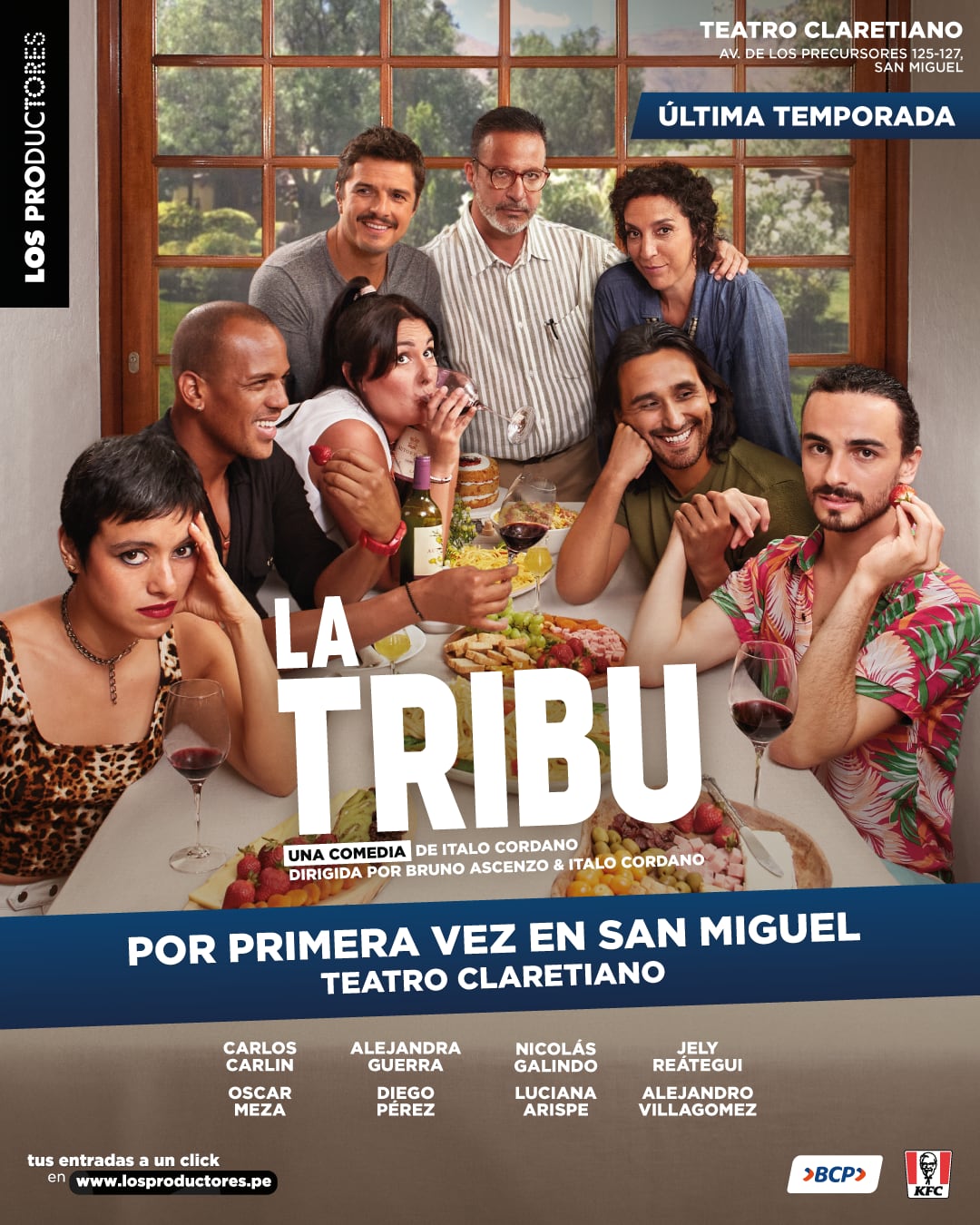 La Tribu, protagonizada por Carlos Carlín, Alejandra Guerra, Nicolás Galindo, Jely Reátegui, Oscar Meza, Diego Pérez, Luciana Arispe y Alejandro Villagómez, cuenta la historia de Silvano Cavagnaro, quien ansía celebrar en paz y armonía el cumpleaños de su esposa, Tere, un plan que se ve abruptamente interrumpido por la inesperada visita de su familia. La llegada de sus tres hijos adultos, acompañados de sus respectivas parejas, transforma un fin de semana que prometía ser tranquilo, en un campo de batalla. La obra se convierte en un espejo de la vida familiar, con todos sus altibajos, desafíos y momentos de pura alegría.