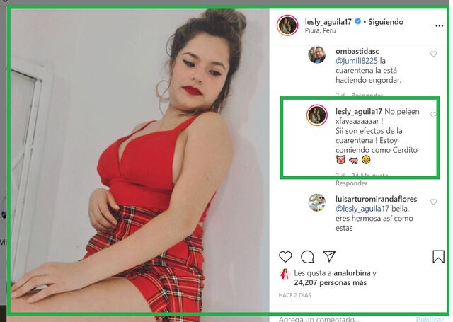 Lesly Águila es una de ellas y hace poco compartió una fotografía de ella no se le ve con unos kilitos de más, lo que fue puesto en evidencia por una usuaria.
