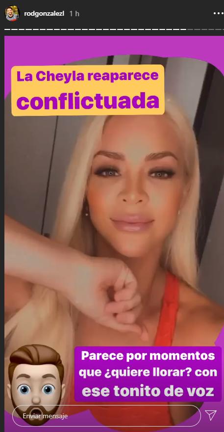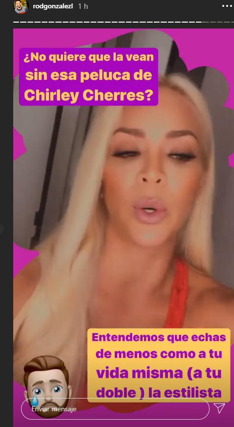 “La Sheyla reaparece conflictuada. ¿Parece que por momentos quiere llorar? Con ese tonito de voz. ¿No quiere que la vean sin esa peluca de Shirley Cherres? Entendemos que echas de menos, como a tu vida misma, a tu doble la estilista”, señaló.
