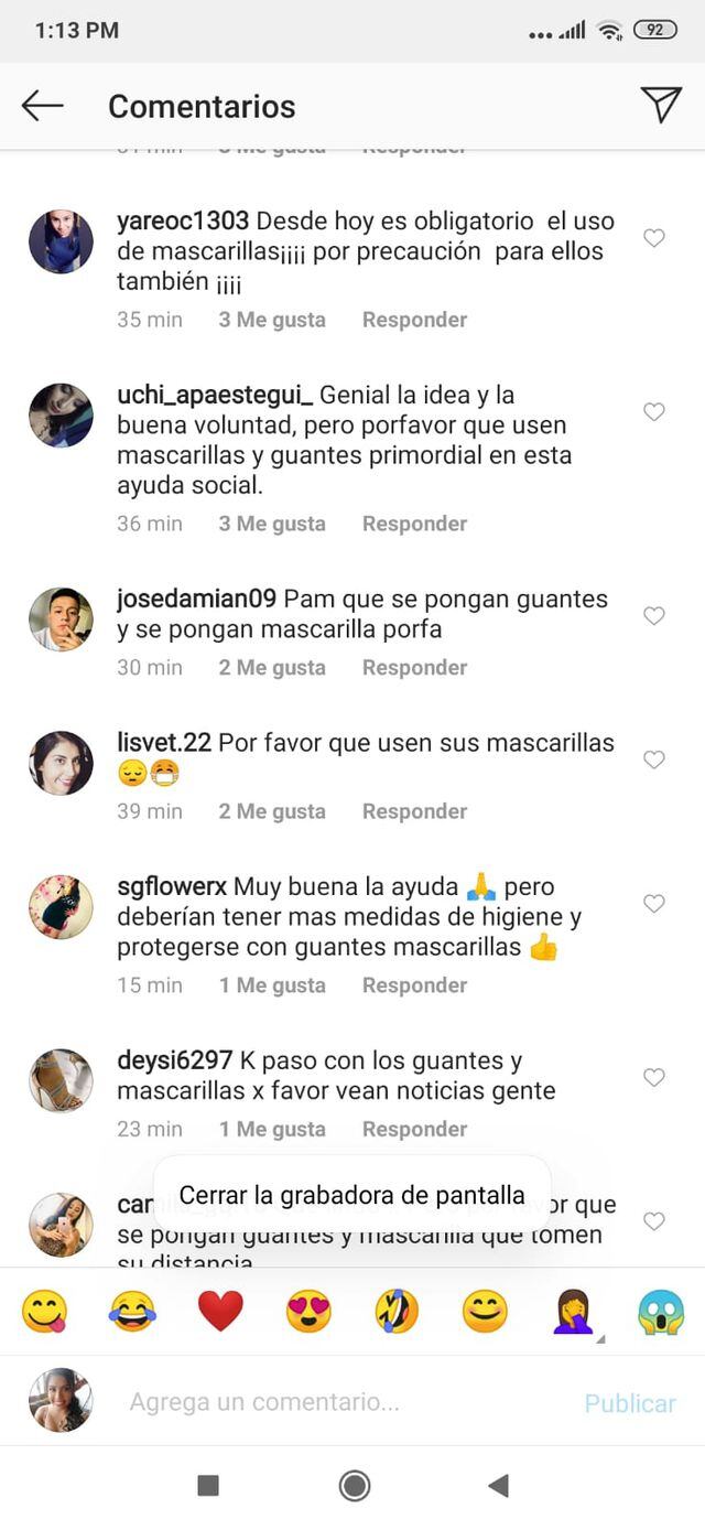 Usuarios en Instagram resaltaron la iniciativa pero lamentaron que nadie usara mascarillas. “Buena idea y buena voluntad, pero por favor que usen mascarillas”, “Pam que se pongan guantes y se pongan mascarillas porfa” o “Muy buena la ayuda, pero deberían tener más medidas de higuiene y protegerse con guantes y mascarillaS”, fueron algunos comentarios.