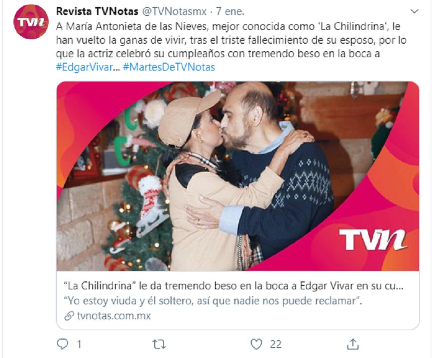 “A él lo conozco desde hace más de 50 años, siempre nos llevamos muy bien, así que toda la vida lo he sentido parte de mi familia; y sobre el beso, es la primera vez que nos damos uno, pero ya estoy viuda y él es soltero, nadie nos puede reclamar (ríe). La verdad sí me sorprendió mucho cuando me dio el beso, pero me gustó y bromeamos con que los dos estamos solteros”.