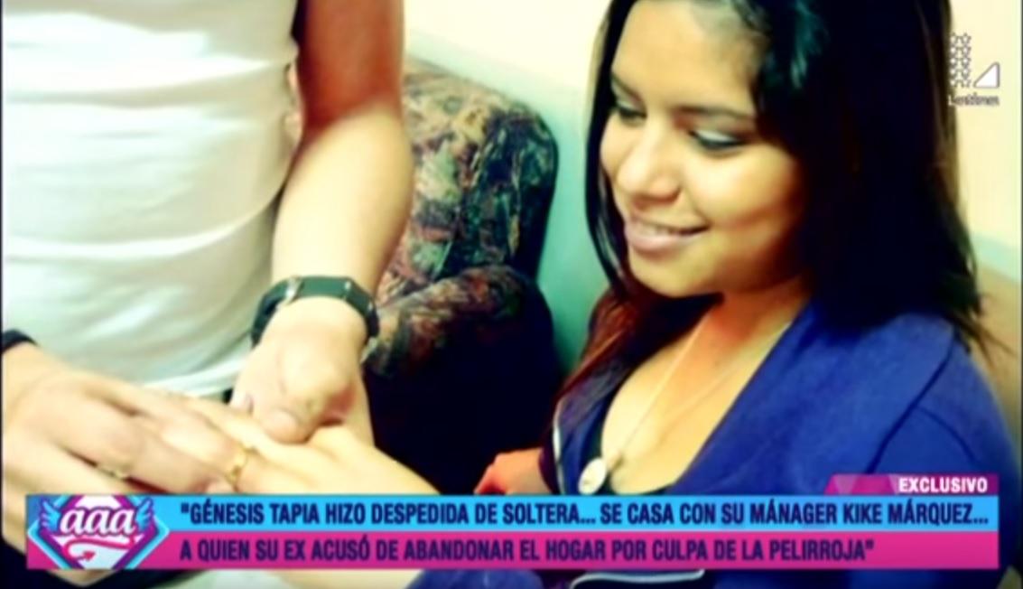 Con una sonrisa nerviosa, Betina Gallo miraba la boda de Kike Márquez y Génesis Tapia, quienes contrajeron nupcias y salieron a declarar para las cámaras de Amor, amor, amor. La pelirroja le restregaba su amor a la ex de su esposo.