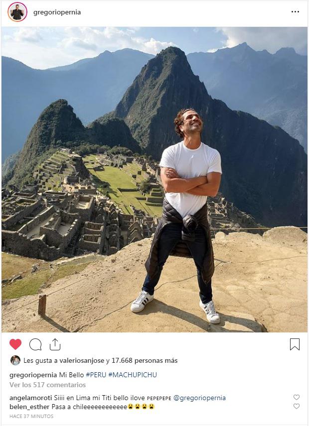 “Mi Bello #PERU #MACHUPICHU”, escribió Gregorio Pernia al pie del complejo arqueológico. La fotografía tiene varios comentarios de sus fans peruanas que le han dado la bienvenida al país.