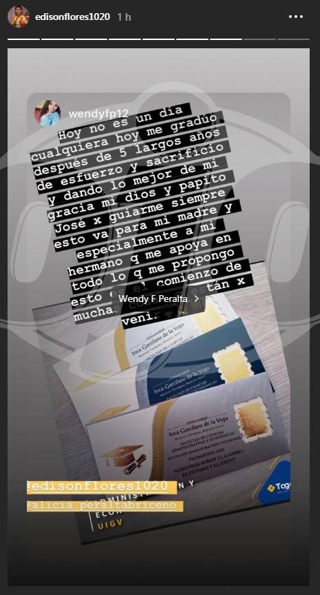Por ello, compartió las imágenes de sus invitaciones para la graduación y no dudó en escribir un conmovedor mensaje donde agradece especialmente a Edison Flores por haberla apoyado en este tiempo.