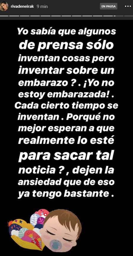 “¡Yo no estoy embarazada! Cada cierto tiempo se inventan, por qué no mejor esperan a que realmente lo esté para sacar tal noticia? Dejen la ansiedad que de eso ya tengo bastante”, escribió.