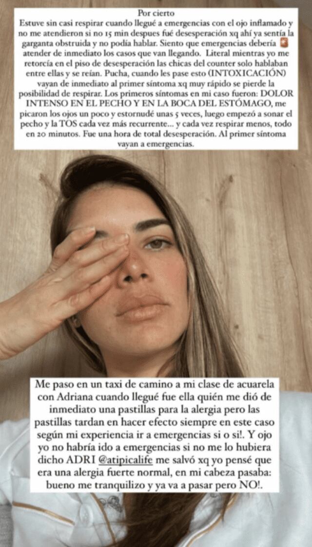 La modelo cuenta que de un momento a otro empezó a sentirse mal. Cuando llegó al hospital, enfrentó una espera que calificó como ‘desesperante’ y reveló que sufrió una severa intoxicación.