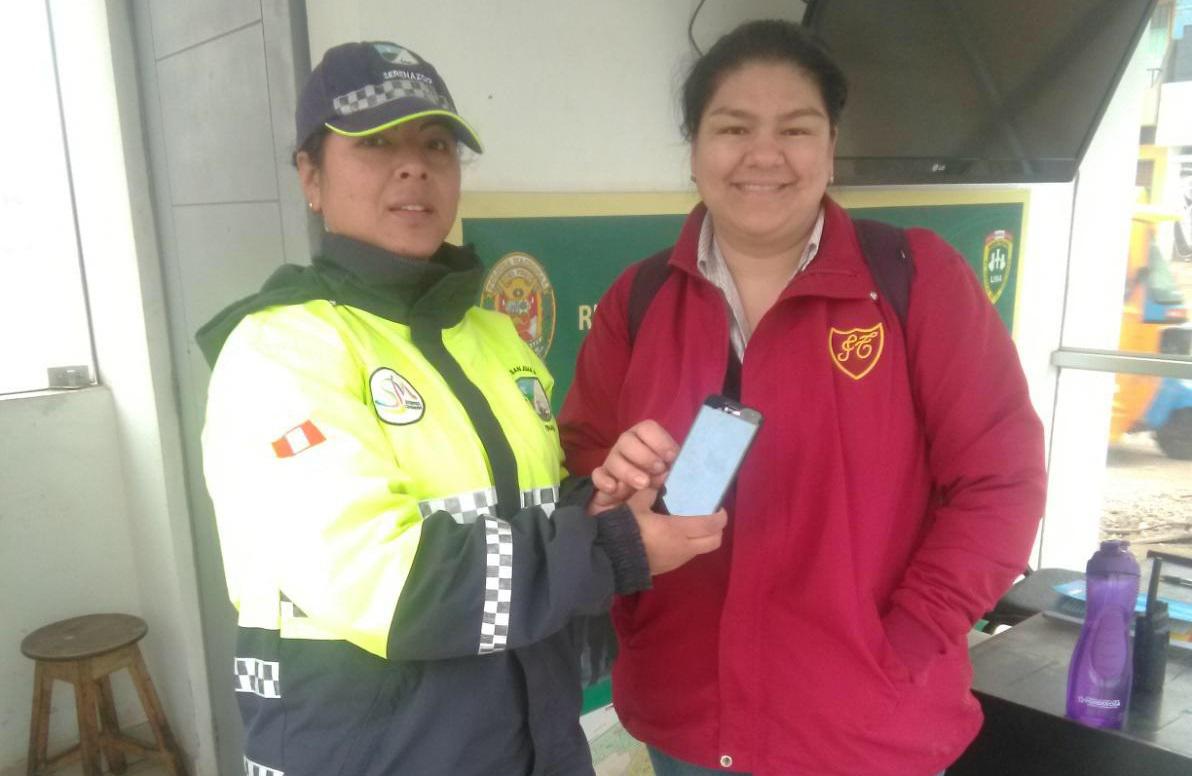Nathalia Guerrero Burga, quien el jueves por la tarde perdió su celular y en menos de 24 horas recibió una llamada de la serena de la Municipalidad de San Juan de Miraflores, Angélica Hilario Machaca, quien buscó insistentemente a la dueña para devolverle el smartphone.
