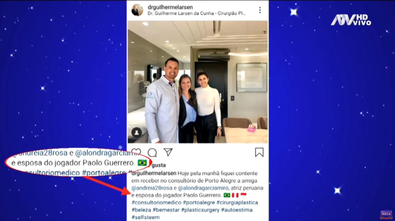 Alondra García Miró estuvo al lado del 9 de la selección y a la salida del hotel ella fue abordada por los urracos del programa Magaly TV La firme, quienes le preguntaron si se casó en secreto con el capitán, pues hace unos días un médico brasileño la llamó “esposa de Paolo Guerrero”.