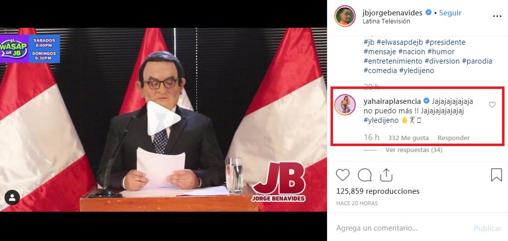 Al ver la parodia en la cuesta de Instagram de Jorge Benavides, Yahaira Plasencia perdió la oportunidad de comentar. “Jajajajajajaja no puedo más !! Jajajajajajajaj #yledijeno”, le escribió la salsera.