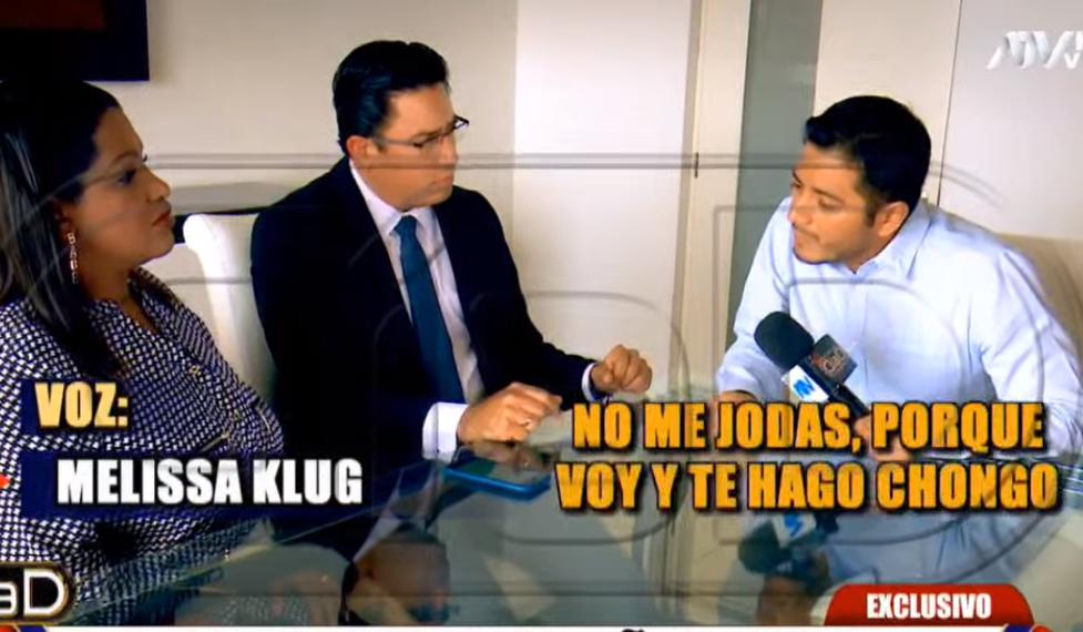 Luego, mostró otro audio de Klug a Farfán donde ella lo insulta: “No me jodas ah porque voy y te hago chongo. No me jodas, mierd**”