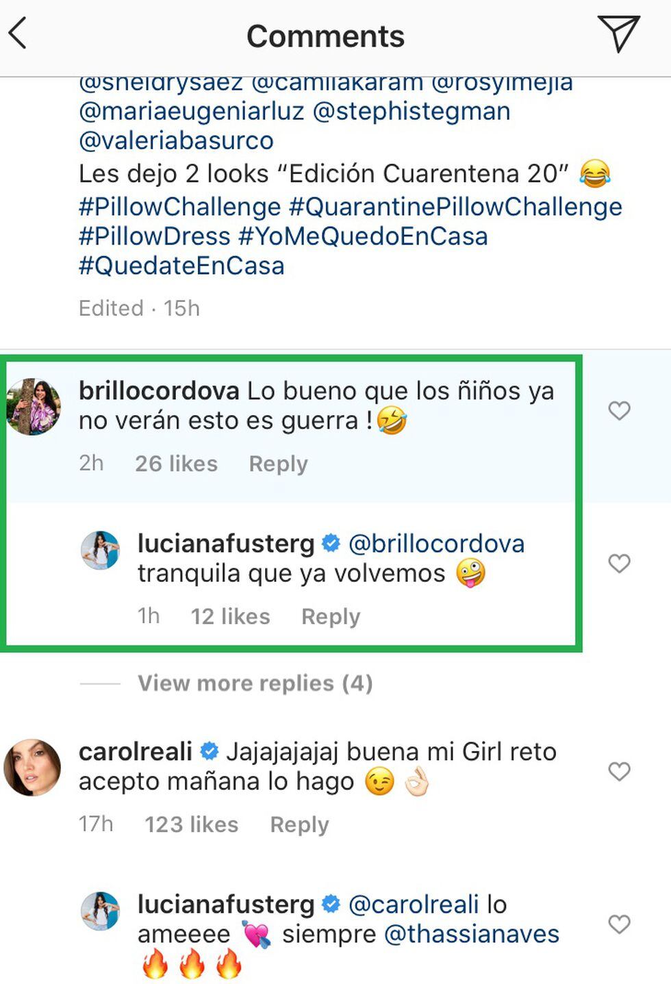 Luciana Fuster no se quedó callada y respondió con ironía: “Tranquila que ya volvemos”.