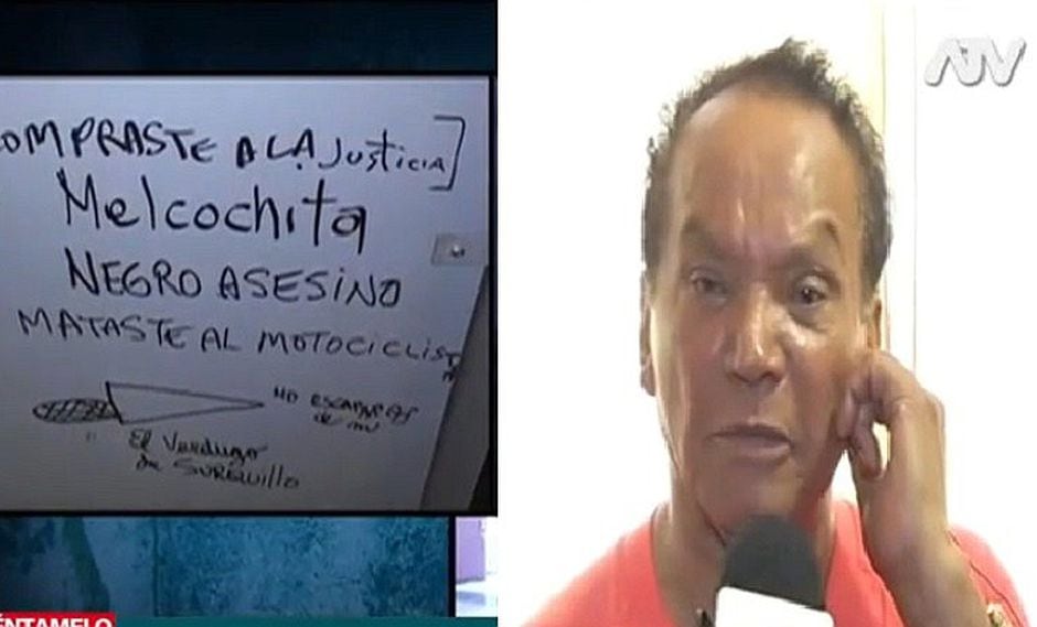 En uno de los mensajes que mostró esta mañana el programa matutino "Cuéntamelo todo", se puede leer: "Compraste a la Justicia, Melcochita. Negro asesino. Mataste a un motociclista. No escaparás. El verdugo de Surquillo".