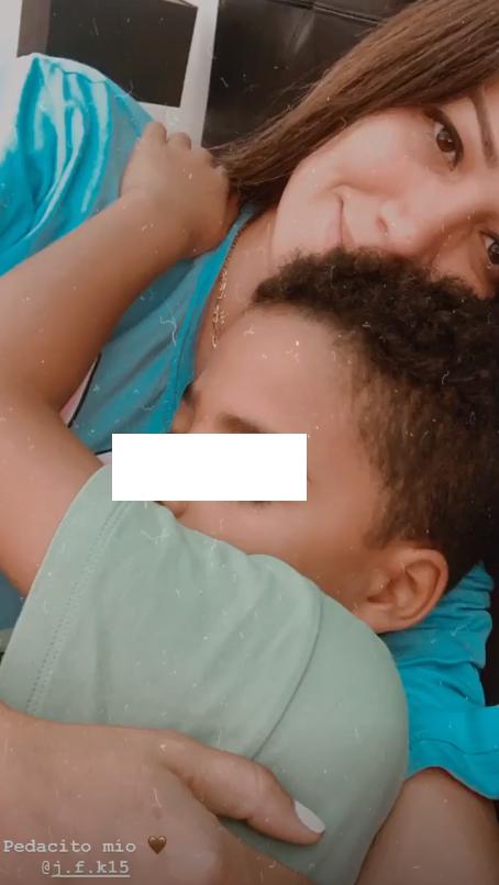 Como pie de la primera instantánea puso “Pedacito mío”, derrochando amor hacia el menor de sus pequeños.