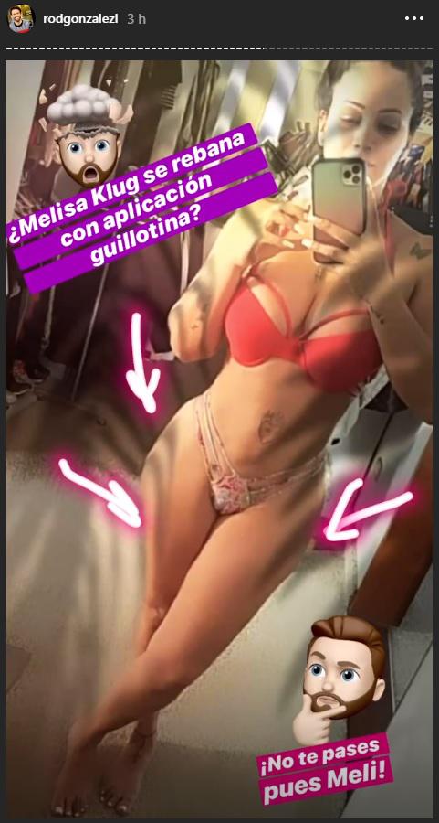 Es así que Melissa Klug decidió colgar la imagen a través de sus historias de redes sociales donde deja muy poco a la imaginación.