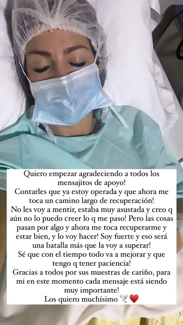 “Contarles que ya estoy operada y que ahora me toca un camino largo de recuperación. No les voy a mentir, estaba muy asustada y creo que aún no lo puedo ceer lo que me pasó”, escribió Paloma.
