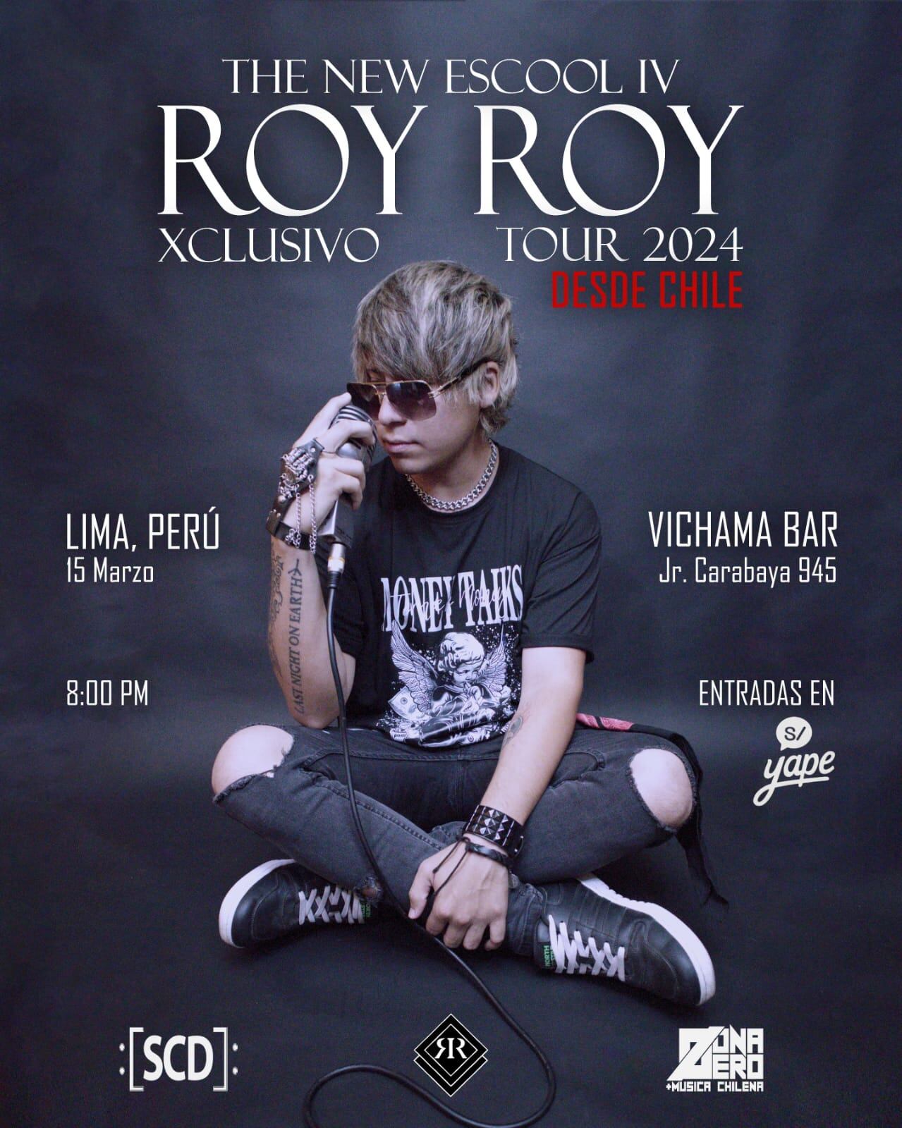 Este 15 de marzo el cantante, compositor y productor musical chileno “Roy Roy” llegará al Perú para dar inicio a su primera gira internacional en “Vichama Rock Bar” del Centro de Lima.