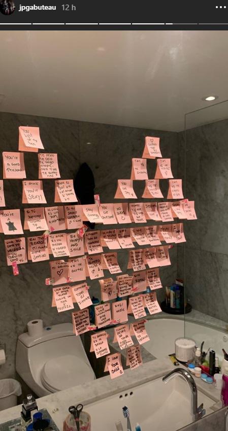 Inclusive, este 03 de octubre, Jean Paul cumplió años y fue sorprendido con románticos mensajes puestos en papelitos pegados sobre la luna de la bañera, en forma de un corazón. “Eres una buena persona, eres sexy, eres una estrella, contigo todo es diferente, me encanta tu sonrisa, te quiero hasta el infinito”, son algunos de los recordatorios que le dejó su musa inspiradora.