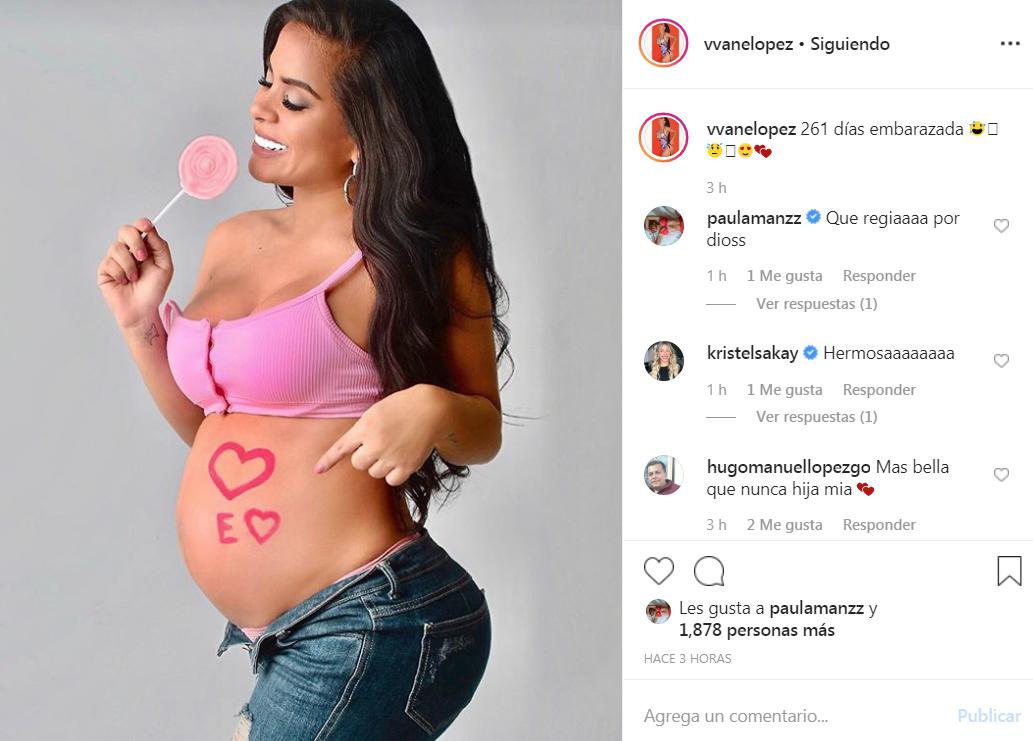 Luego, Vanessa López compartió una foto con 261 días de embarazo.