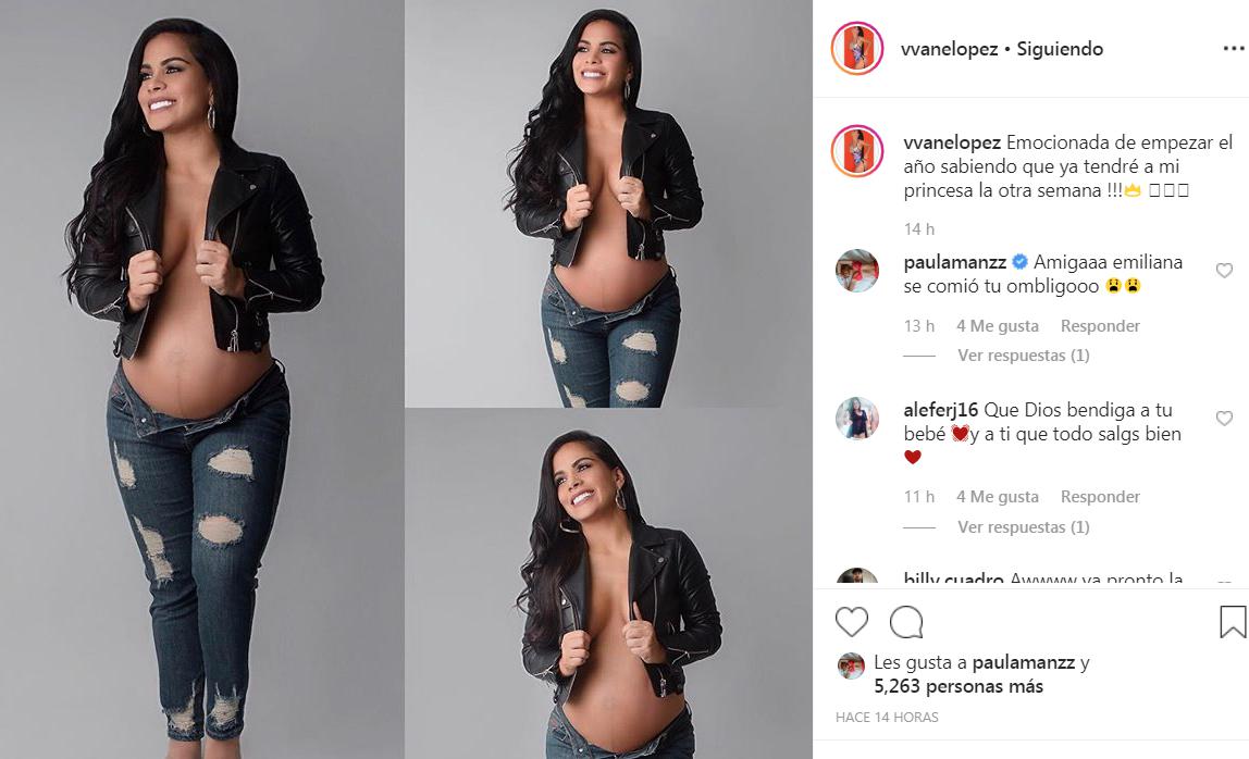 “Emocionada de empezar el año sabiendo que ya tendré a mi princesa la otra semana !!!”, escribió Vanessa López junto a una foto donde se le ve su avanzado estado de gestación.