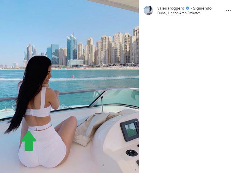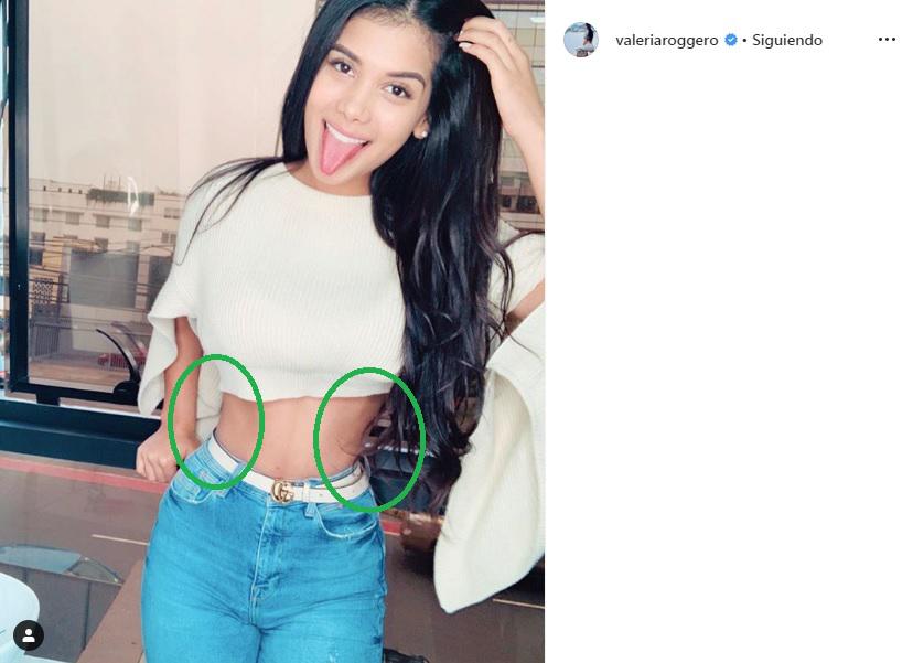 En otra imagen, la cintura de Valeria Roggero luce borrosa e incluso tiene una mancha a la altura de las costillas.