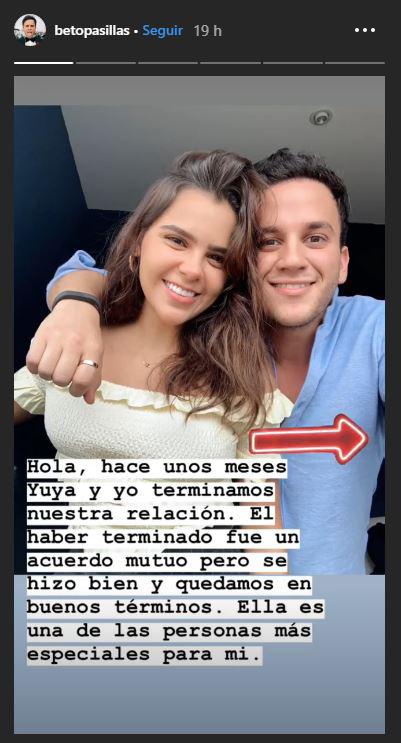 Este fue uno de los mensajes que publicó Beto Pasillas para confirmar el término de su relación con Yuya.