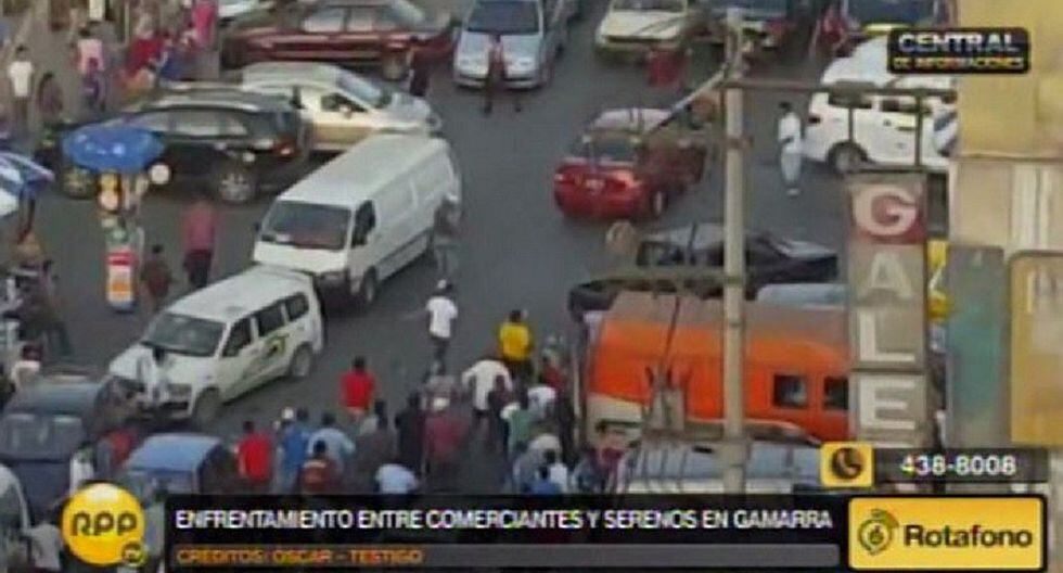 Un enfrentamiento entre serenos y presuntos comerciantes informales que iban a ser desalojados de las calles, se registró la tarde de este jueves en la tarde en los alrededores del emporio comercial de Gamarra, en La Victoria.