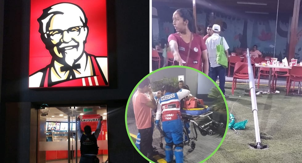 Personal de Fiscalización de la Municipalidad de Surco clausuró el KFC ubicado en la cuadra 42 de la avenida Benavides tras registrarse la caída de un poste sobre una comensal, causándole varias heridas.