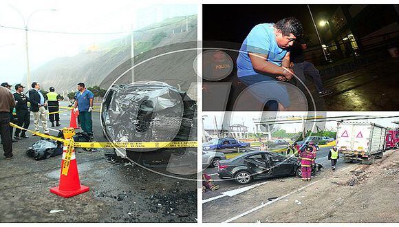 Muerte en la Costa Verde. Alrededor de la 1 de la madrugada de este viernes, dos amigos y compañeros de trabajo perdieron la vida tras el choque de la camioneta en la que viajaban contra la parte trasera de un camión cisterna que regaba áreas verdes en la Costa Verde, en el distrito de Magdalena.