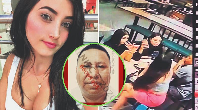 Nuevas imágenes de cámaras de seguridad muestran al sujeto cuando toca a una de las venezolanas que lo acompañaba y que aparece a su costado en los videos.