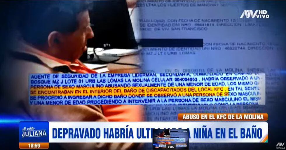 Fue un trabajador del KFC quien notó que Adolfo Cuba Trujillo (61) no estaba solo dentro de los servicios higiénicos para discapacitados sino que a su lado había una menor de edad.