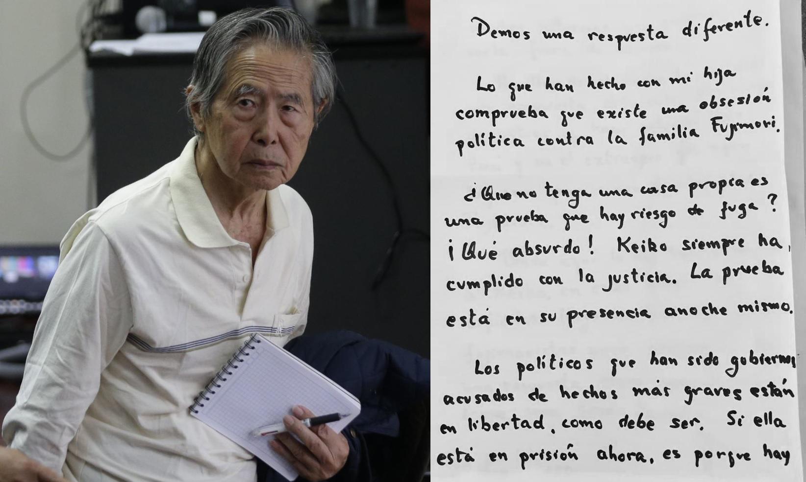 “Lo que han hecho con mi hija comprueba que existe una obsesión política contra la familia Fujimori”, escribió el ex jefe de Estado en una carta escrita a mano difundida por redes sociales.