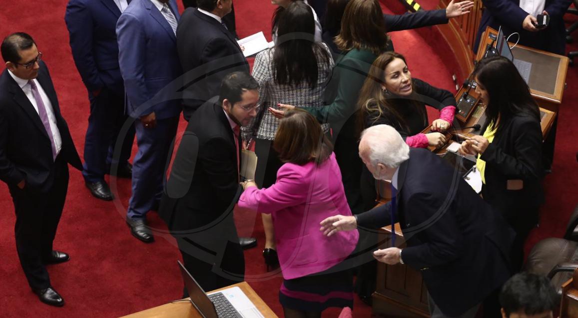 El hemiciclo del Congreso de la República fue este lunes escenario de trifulcas acaloradas entre los parlamentarios luego de que su presidente Pedro Olaechea anunciara que la Junta de Portavoces había decidido iniciar con la votación de los magistrados del Tribunal Constitucional previo a la presentación del premier, Salvador del Solar.