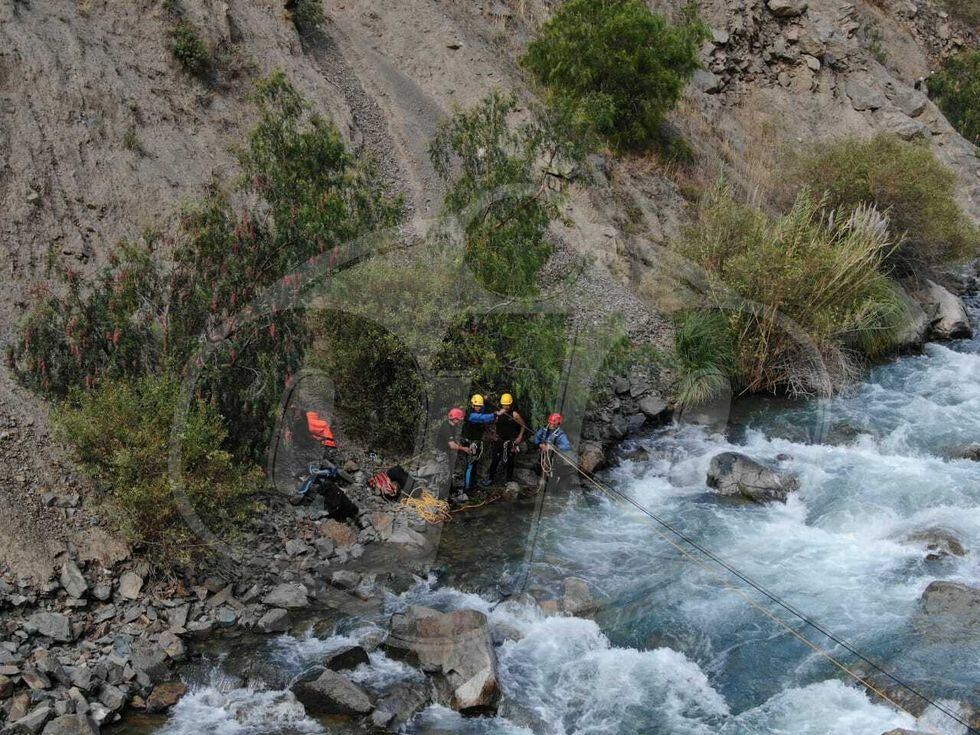 La alerta la habría lanzado un lugareño quien se encontraba en compañía de los rescatistas, que rápidamente formaron cuadrillas de rescate para descender unos 50 metros al río y poder rescatar el cuerpo que se encuentra atrapado entre las piedras, sumado a esto el fuerte caudal del río que se presenta a esta hora.
