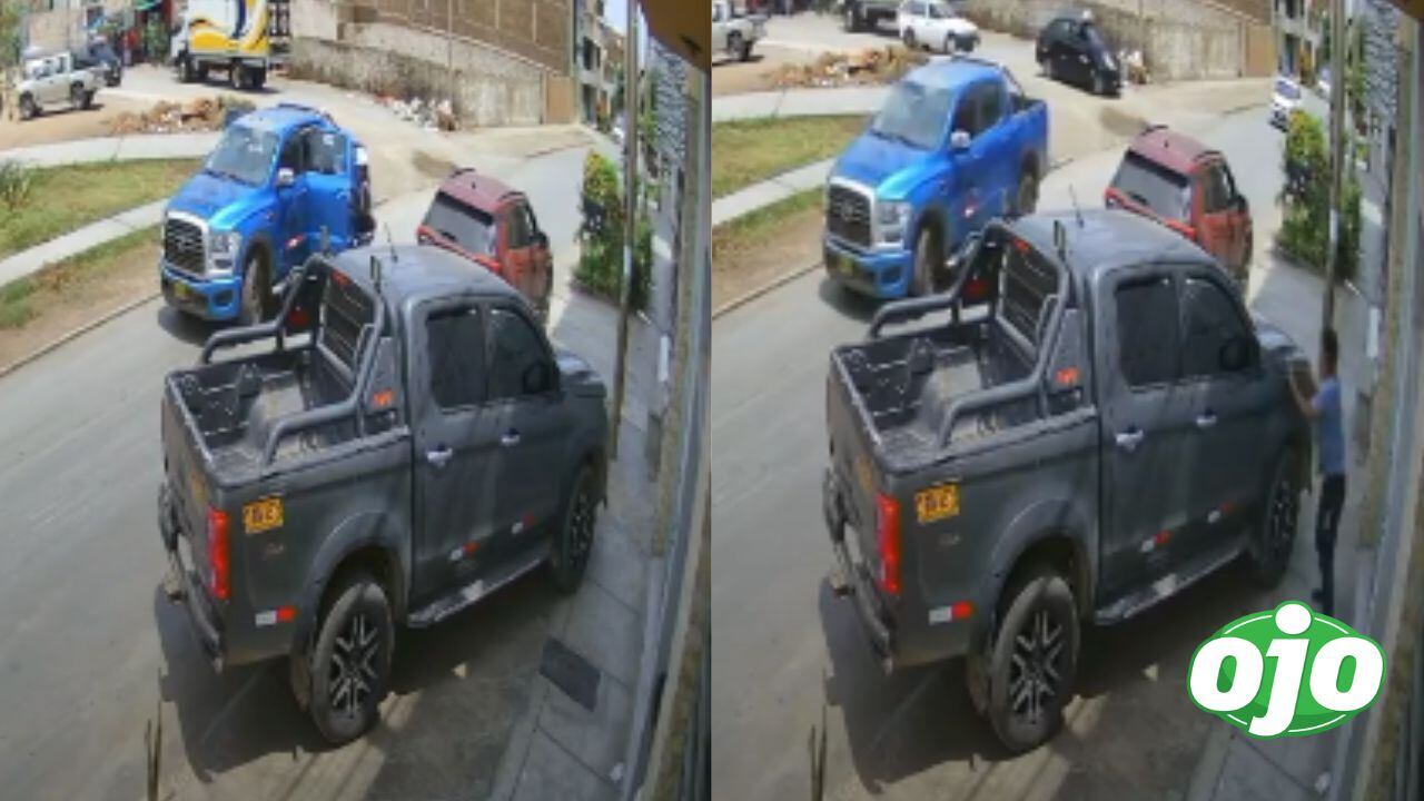 Dos de ellos se acercaron por la ventana del lado del conductor, mientras otro se dirigió hacia el asiento del copiloto y uno más se quedó en medio. Una vez que lograron sacar al ciudadano del vehículo, una camioneta azul que estaba estacionada a pocos metros se acercó.