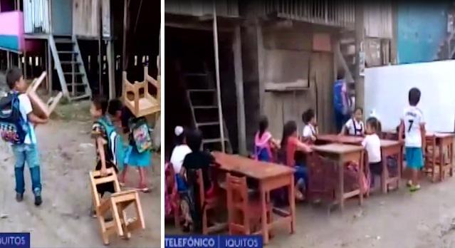 Mientras tanto, los menores estudian bajo el inclemente sol de Iquitos y en una zona que es inundable.